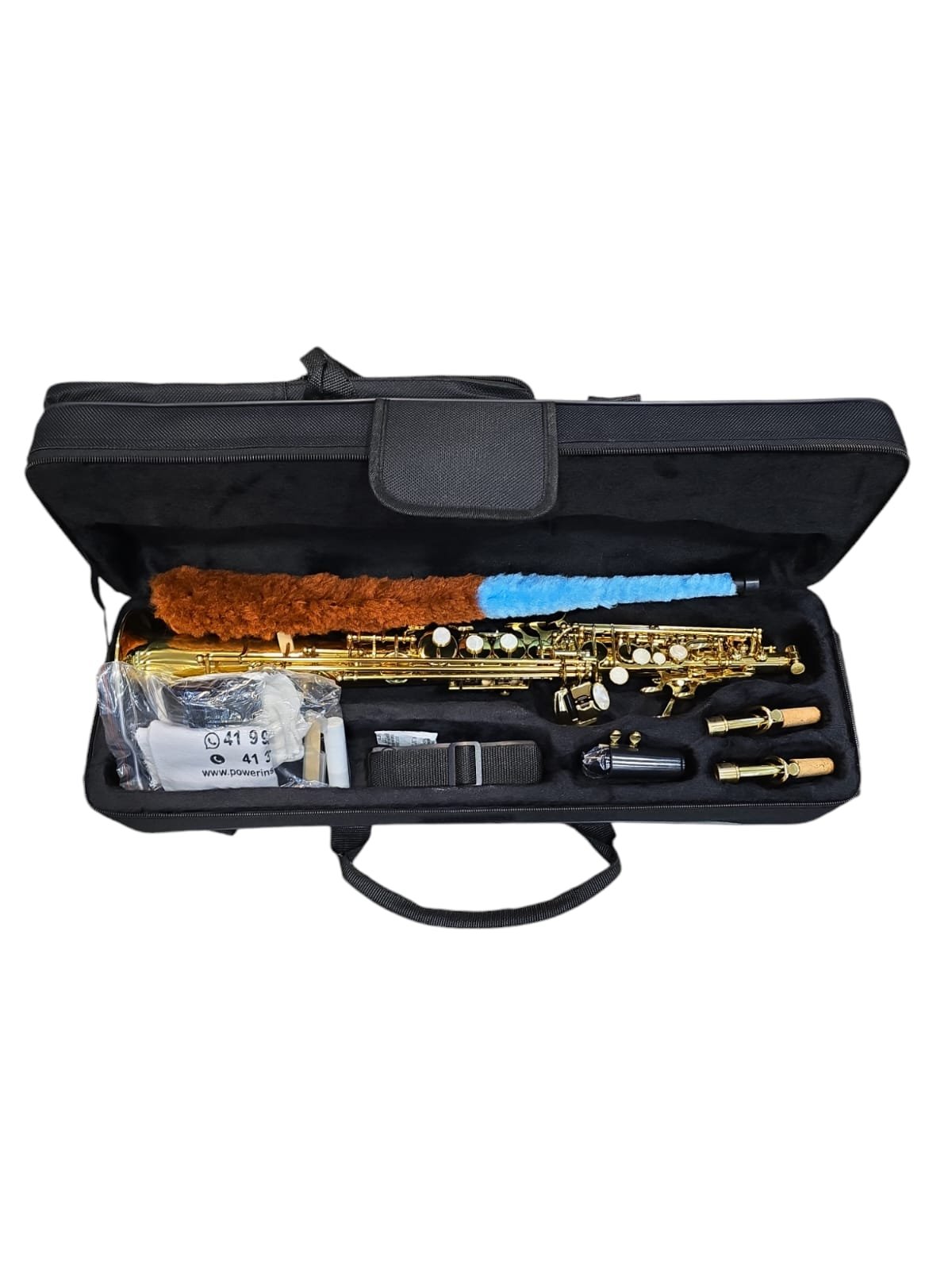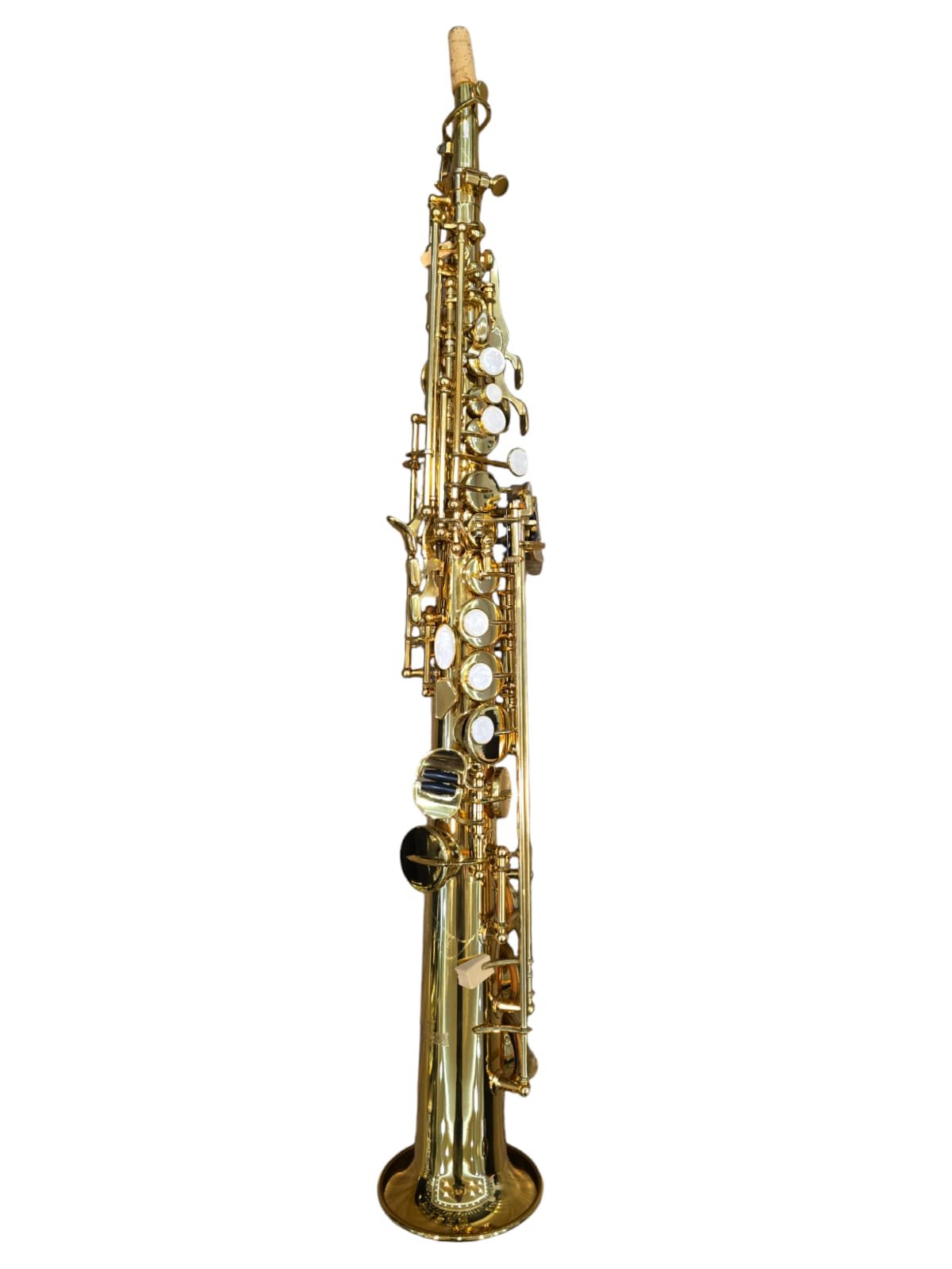 O Saxofone Soprano Reto kings USA possui chave Fá e Si bemol grave articulável.