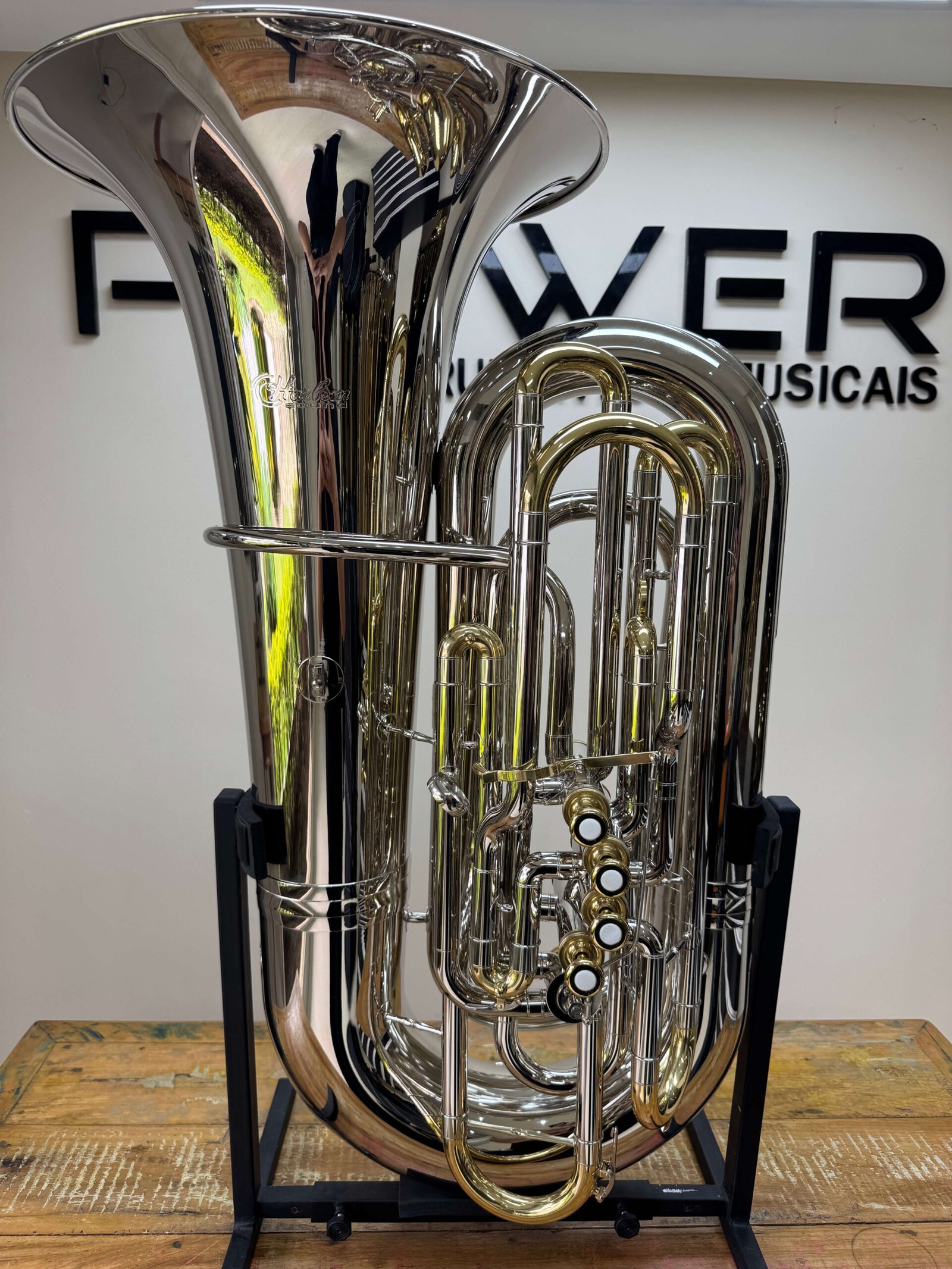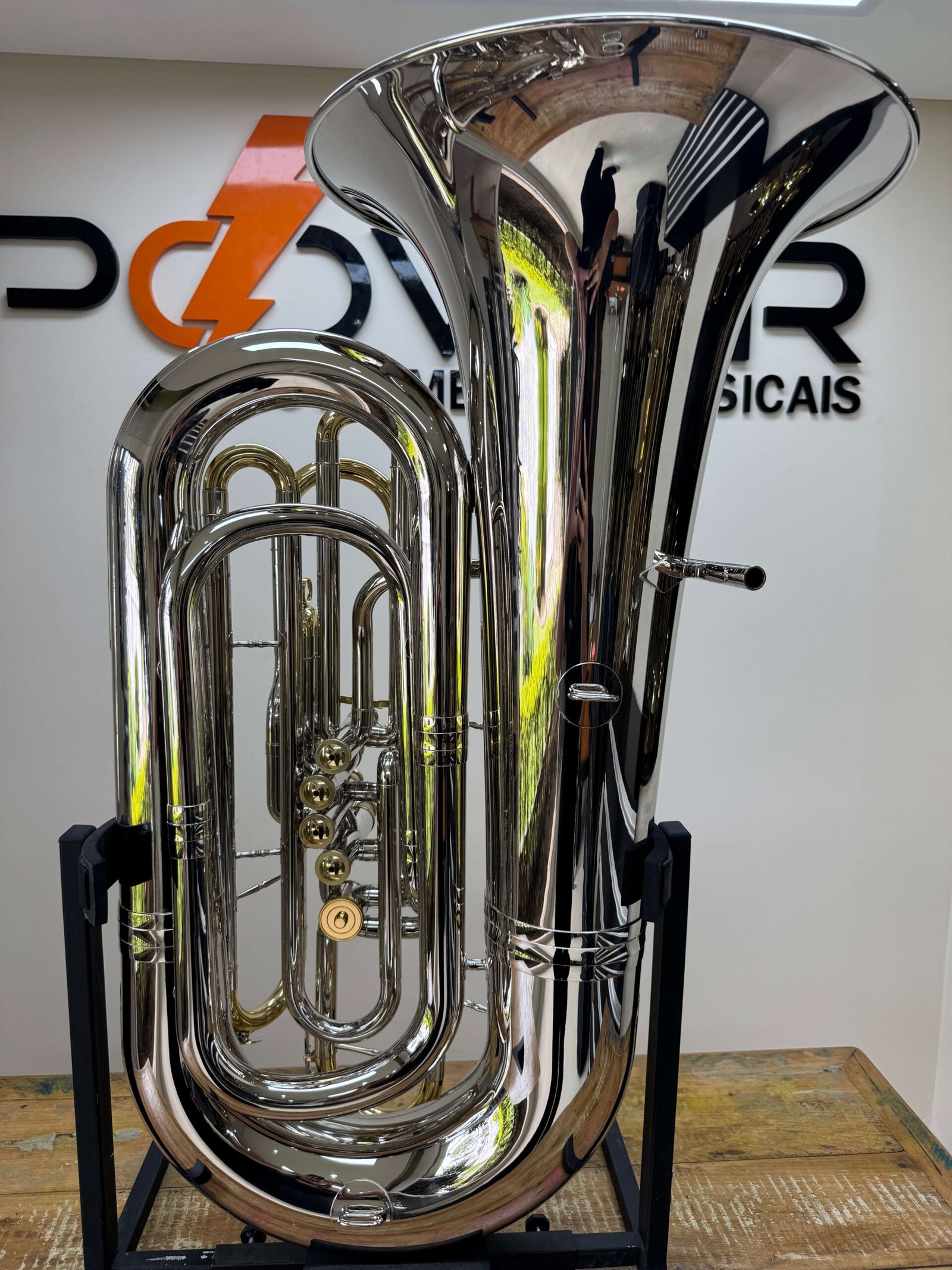 Sonoridade: Produz um som massivo, profundo e encorpado, característico das tubas 5/4. O acabamento niquelado confere um leve brilho extra na projeção, garantindo que a tuba não soe “abafada”, mas sim com presença e definição nos graves profundos.